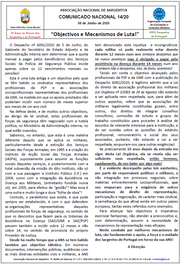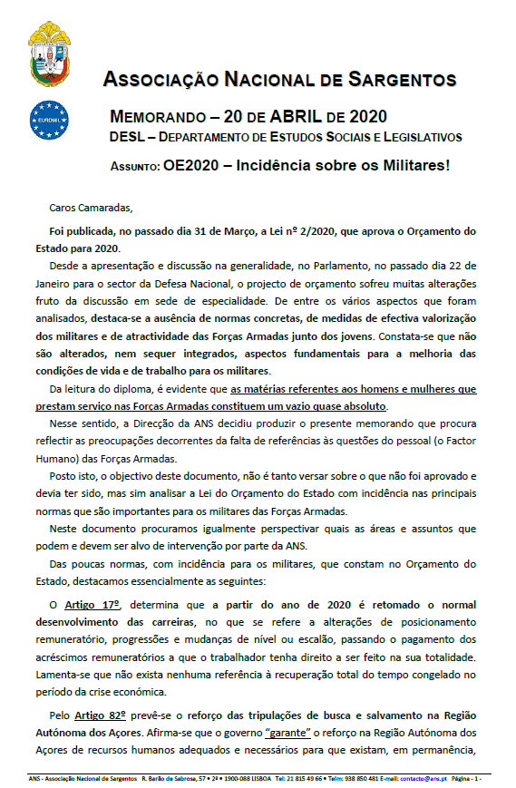 Hoje, 18 de Dezembro de 2019, cumprindo-se uma das decisões aprovadas na Assembleia-Geral do passado dia 17 de Julho, da qual saiu mandatada a actual Direcção, foi vendido o 1º andar da sede da ANS, em escritura efectuada na sede nacional da CGD, em Lisboa. Continuam,...