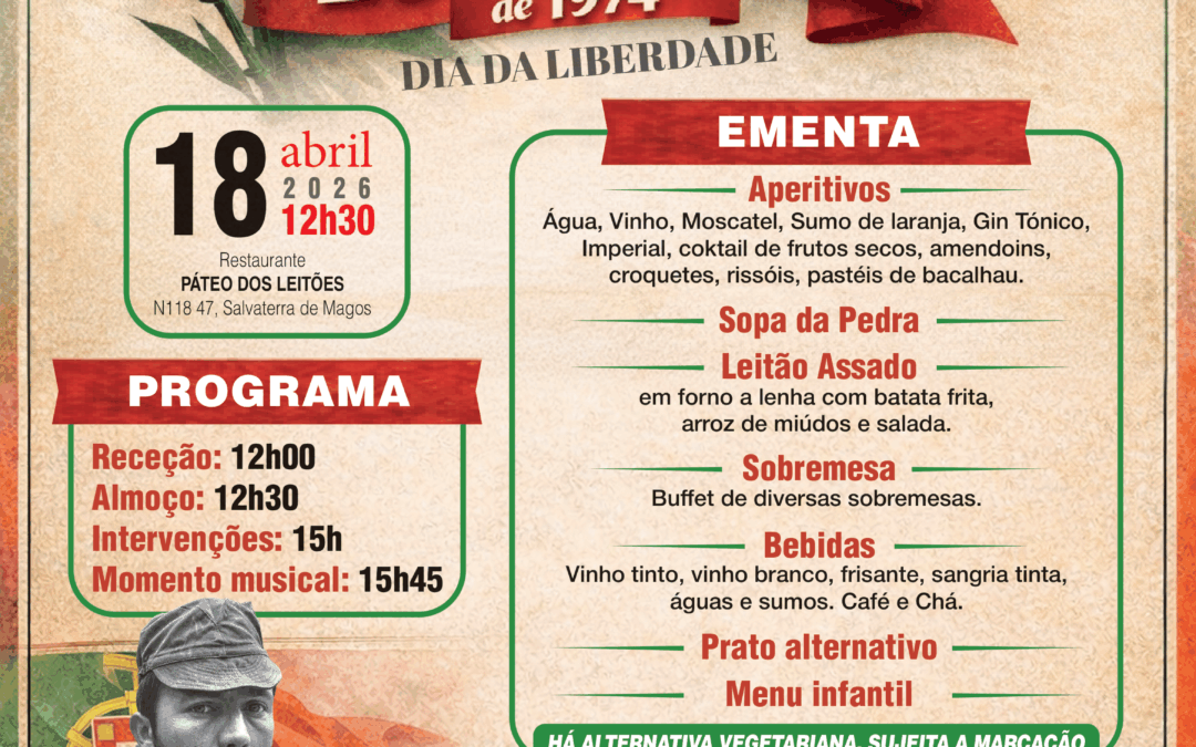 Cumprindo a tradição dos anos anteriores, os Clubes e Associações Militares organizam o almoço comemorativo do 52º aniversário do 25 de Abril.