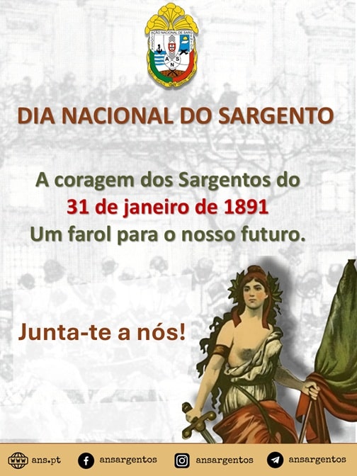 No 135º aniversário da Revolta do Porto, a ANS, juntamente com os camaradas de todo o País, vai celebrar o 31 de Janeiro, Dia Nacional do Sargento.